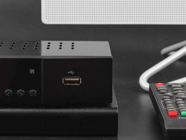 USB-порты воспроизводят видео, музыку и фотографии с флешек, портативных винчестеров или ноутбуков. Например, у приставки Denn DDT114 также есть функция персонального видеорекордера — она запишет ваши любимые телешоу. Для Full HD хватит портов USB 2.0, для 4K понадобятся разъёмы USB 3.0, для 8K — USB 3.1 Gen2 (20 Гбит/с и выше).