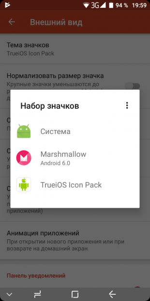 С иконками всё просто. Скачиваем из Google Play понравившийся вам набор значков в стиле iOS и активируем его в опциях Nova Launcher. На выбор есть как платные комплекты, так и совершенно бесплатные.