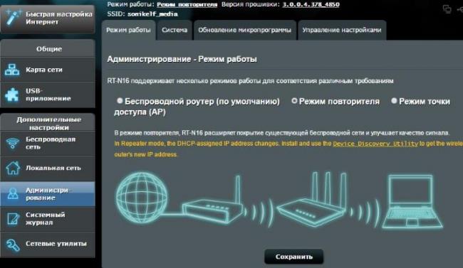 - В качестве альтернативы можно использование второго роутера. Например, если у вас имеется дополнительное устройство, лежащее без дела, то целесообразно задействовать его в качестве репитера, чтобы не покупать новое оборудование. В этом случае на другом маршрутизаторе обязательно должен присутствовать данный режим повторителя в прошивке.