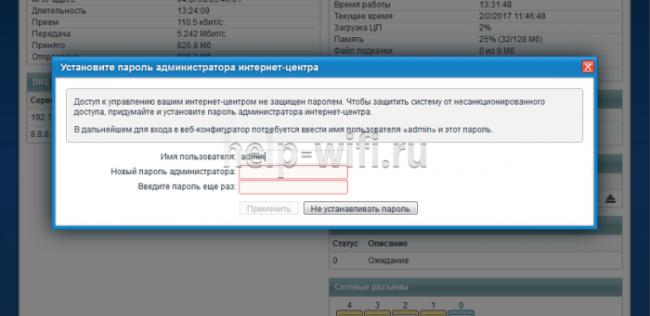 В окошках с именем пользователя и кодом доступа прописываем значение по умолчанию admin. Иногда данные для входа корректирует оператора. В таком случае он должен предоставить клиенту актуальную информацию. После успешной авторизации вы попадете на страницу с настройками конфигурации. На странице приветствия отобразятся технические характеристики сетевого оборудования.