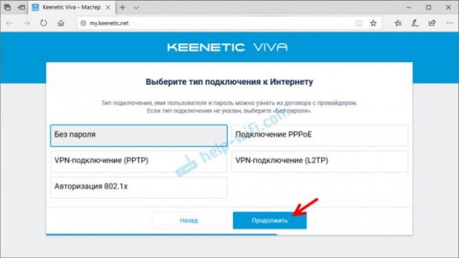 - Следующий пункт предложит выбрать тип подключения к Интернету. Тут уже зависит от вашего провайдера. Выбирайте такой, какой он требует. Новые модели роутеров автоматически определяют настройки.