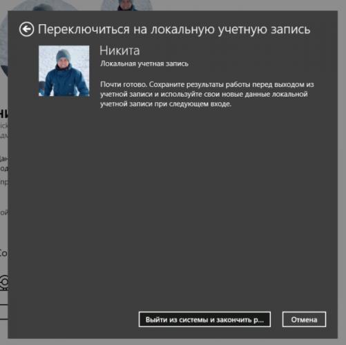 Переход на локальную учетную запись
