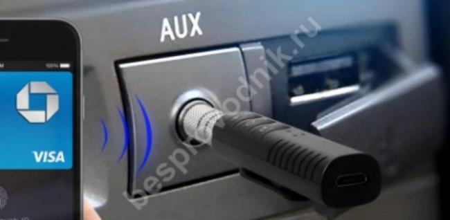 Этот вариант блютуз адаптера заинтересует автовладельцев, у которых в наличии нет входа под аудио в автомагнитоле. В данном случае можно жертвовать качеством звучания. Но если есть возможность, рекомендуется качество звука улучшить новой автомагнитолой с интегрированным внутрь модулем беспроводного сопряжения.