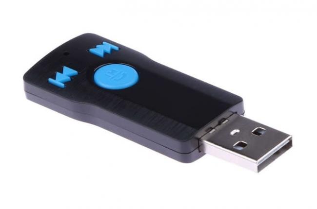 Этот тип адаптера схож с обычной флешкой. Некоторые модели практически от USB-флеш не отличаются. Этот ресивер подключается в USB-порт автомагнитолы и активирует Bluetooth точку доступа для сопряжения магнитолы с другими устройствами. У девайса присутствует ограниченный доступ постоянной памяти, сродни обычной флешки. Магнитола читает данные так, как будто к ней подключен стандартный USB-флешка.