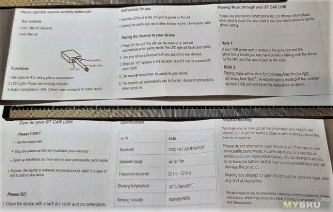 - 9 USB bluetooth AUX адаптер