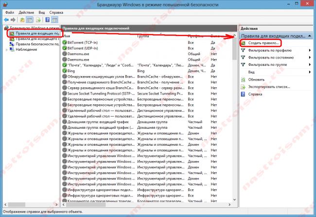 Открыть порт в брандмауэре через панель управления