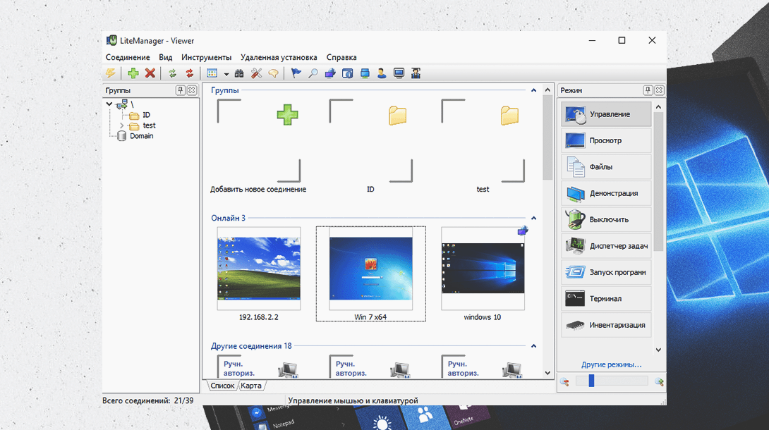 LiteManager предоставляет программы для удаленного доступа устройствам на Windows, Linux и MacOS. С помощью приложения от LiteManager ты сможешь легко и быстро управлять рабочим столом компьютера в режиме реального времени, давая доступ к файловой системе, процессам и сервисам компьютера. Полностью бесплатная версия обеспечивает управление до 30 компьютерами одновременно.